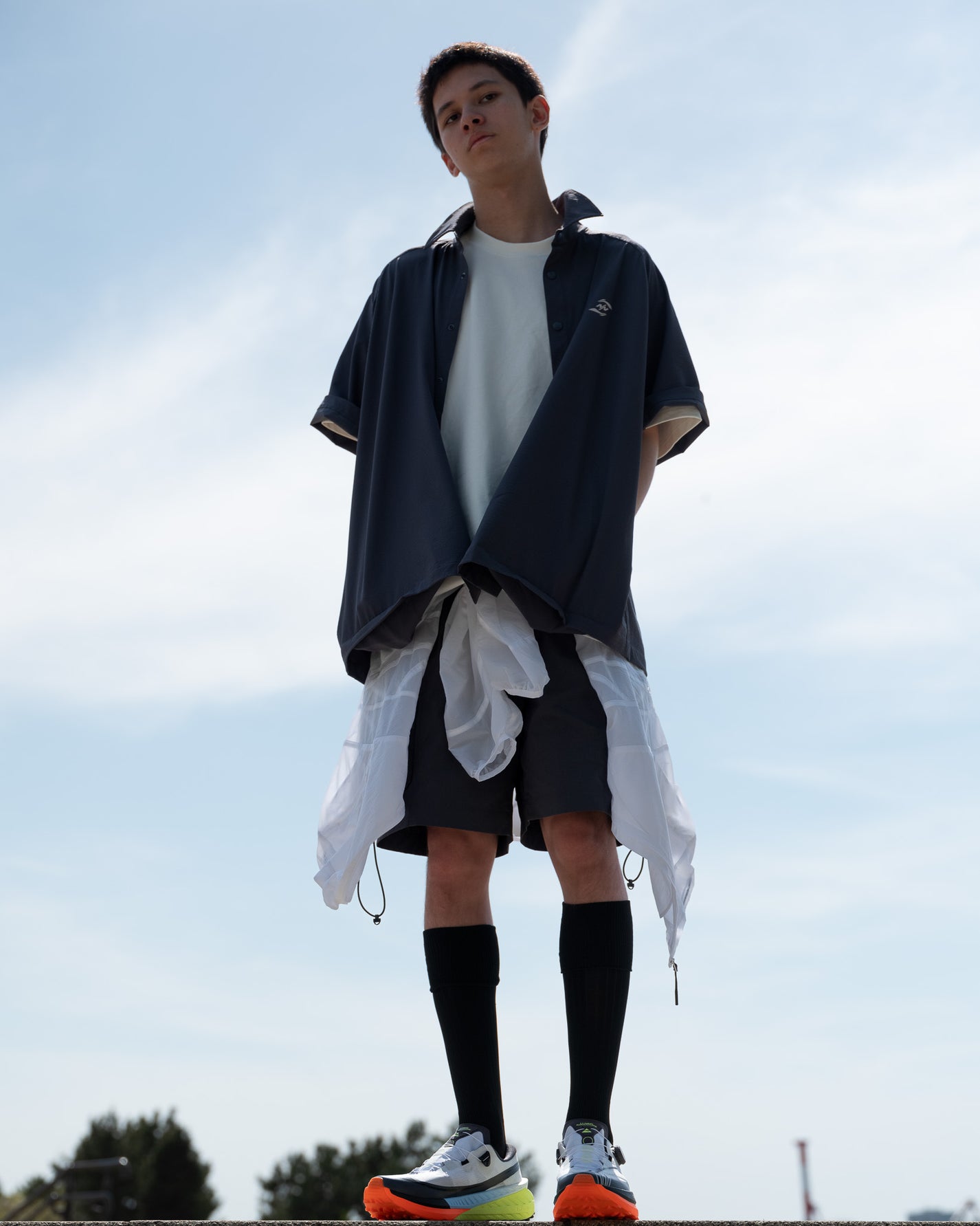 Li-Ning and NINEpointNINE join forces to unveil their first collection , "Time Gate", draws inspiration from the main materials of ancient Chinese architecture where it is the most important carrier in traditional Chinese history. The collection not only introducing a series of functional clothing, but also it leads everyone through the Gate of Time to revisit the past and rediscover culture of “grey tiles” . “Grey tiles” refer to unglazed, grayish-blue tiles. With their beauty, simplicity, waterproofing, and insulation propeties, they have been the main materials in ancient architecture for thousands of years. Their versatile combinations and arrangements also facilitate various climate environments and aesthetic needs. Today, the application value of grey tiles has been continuously enhanced, making it one of the important elements combining ancient and modern architecture. Li-Ning and NINEpointNINE base on the aesthetics and functional of “grey tiles”. They seamlessly apply practical details to the garment , integrating architectural aesthetics, spo˜t essence and outdoor functionality through the use of innovative waterproof fabrics and cutting-edge craftsmanship. The first launch includes functional light-weight jacket and tee, sport short and pants where suitable for both urban commuting and outdoor exploration.