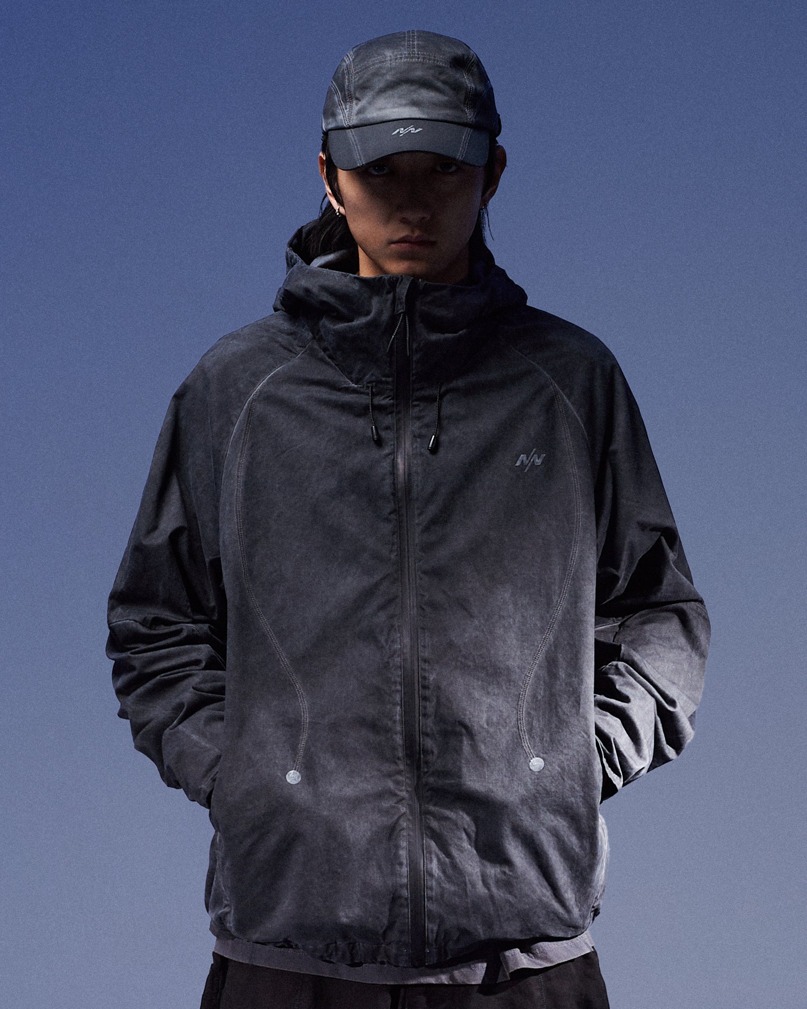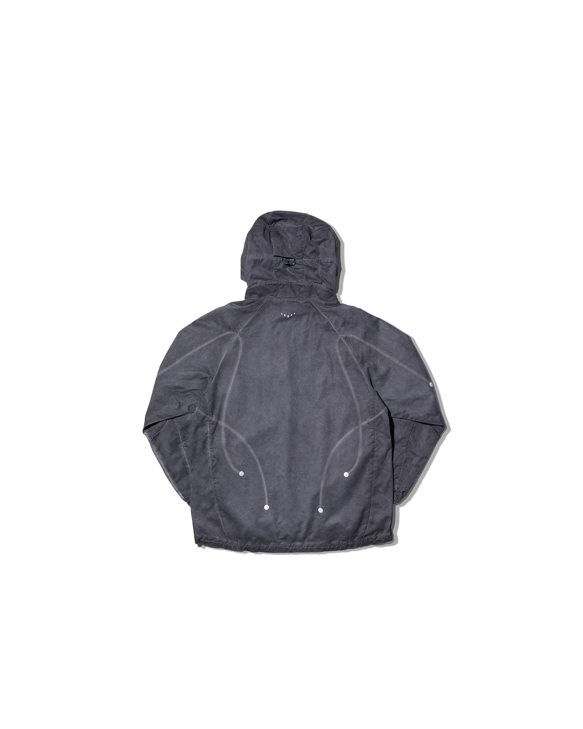 A lightweight, garment-dyed windbreaker built with organic contour paneling that brings subtle depth and motion to the silhouette. Cut from a soft, weather-resistant nylon-cotton blend, it delivers everyday comfort with a technical edge. Reflective detailing, functional pocketing, and a relaxed drape make it ideal for daily movement in shifting conditions.