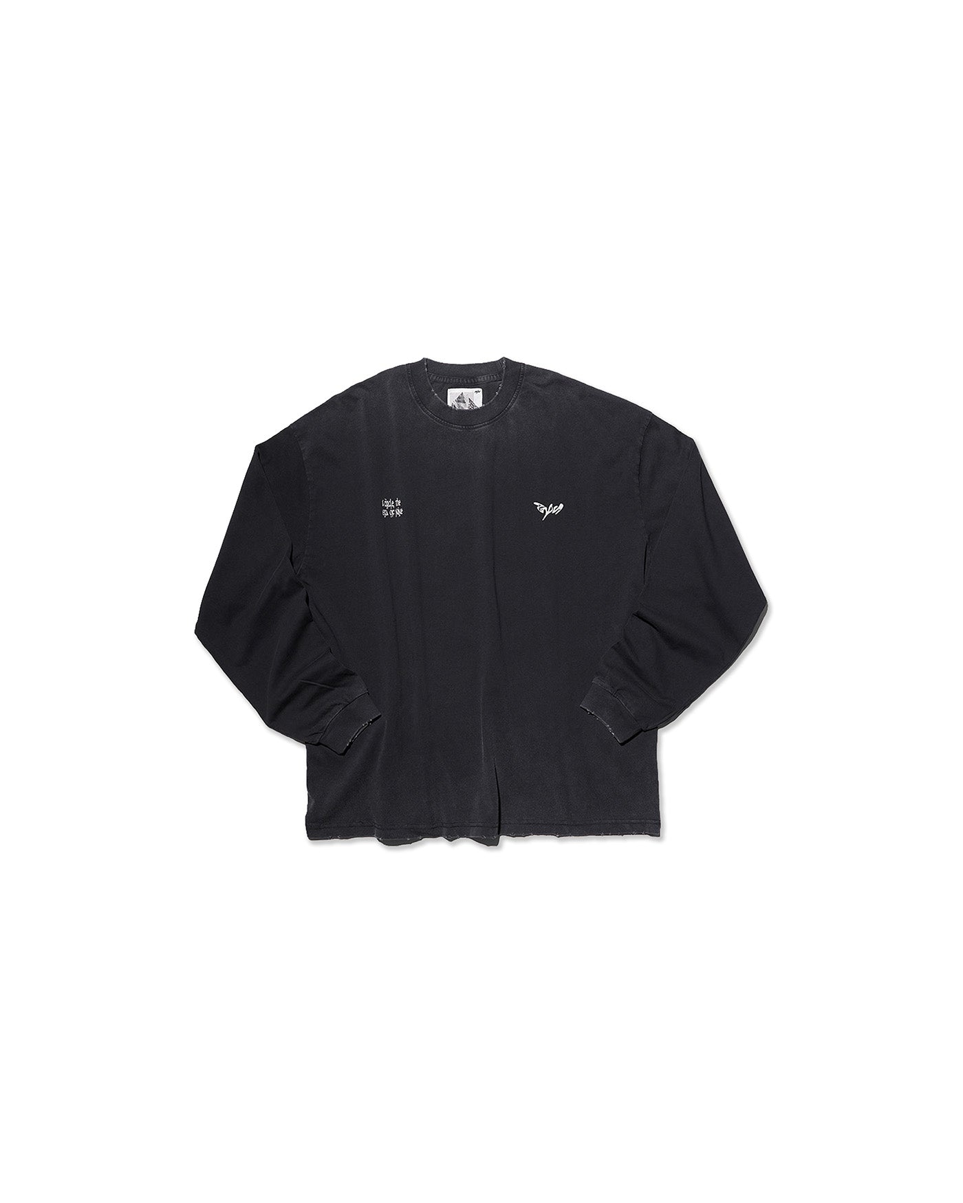 A front chest logo is balanced by a statement back graphic reading “A Circle, The Era of Nine” , rendered in a distressed pigment print to reflect the brand’s evolving journey. Finished with ribbed cuffs and raw-edge detailing along the hem, The Era of Nine L/S Tee embodies the brand’s philosophy of imperfection as progression.