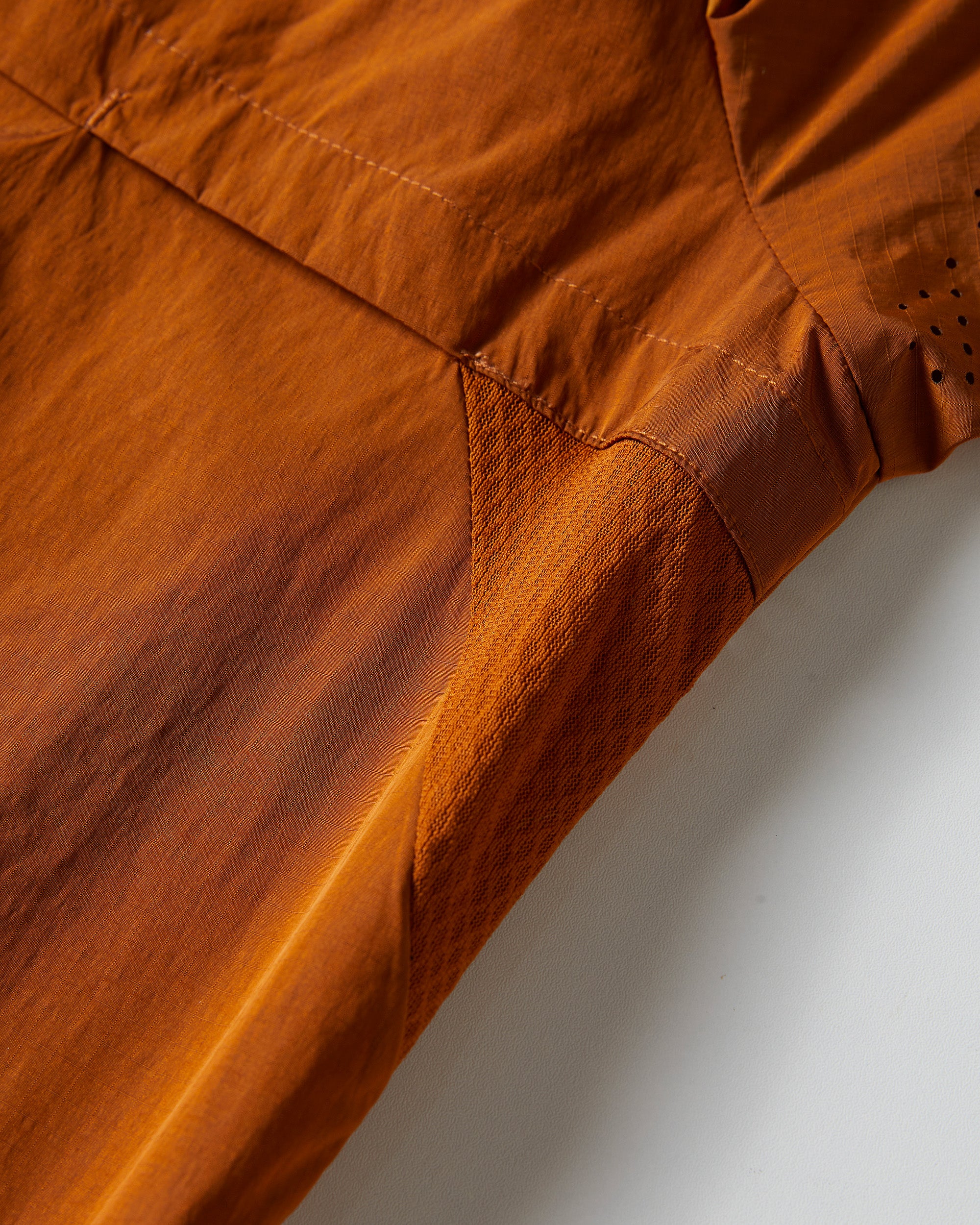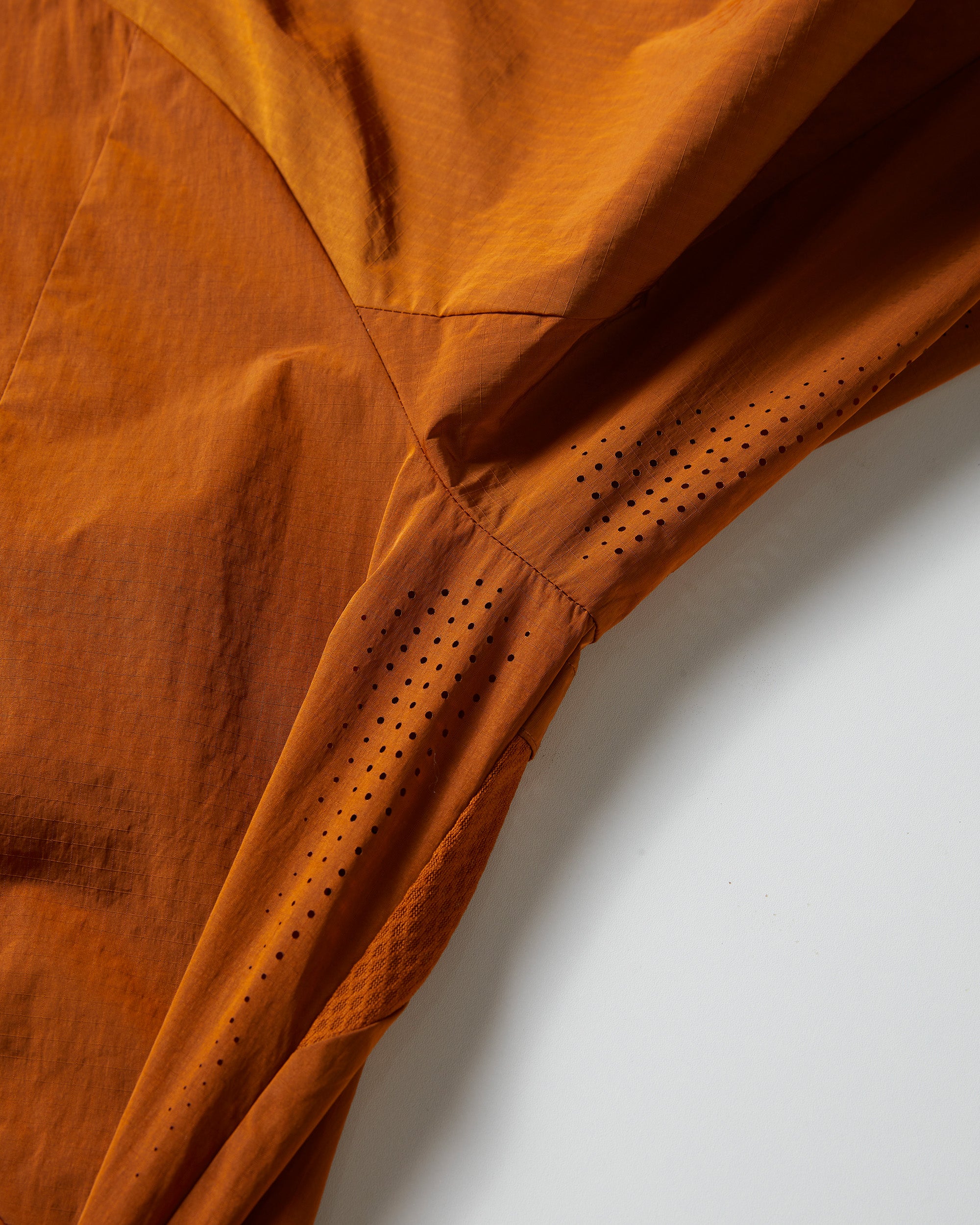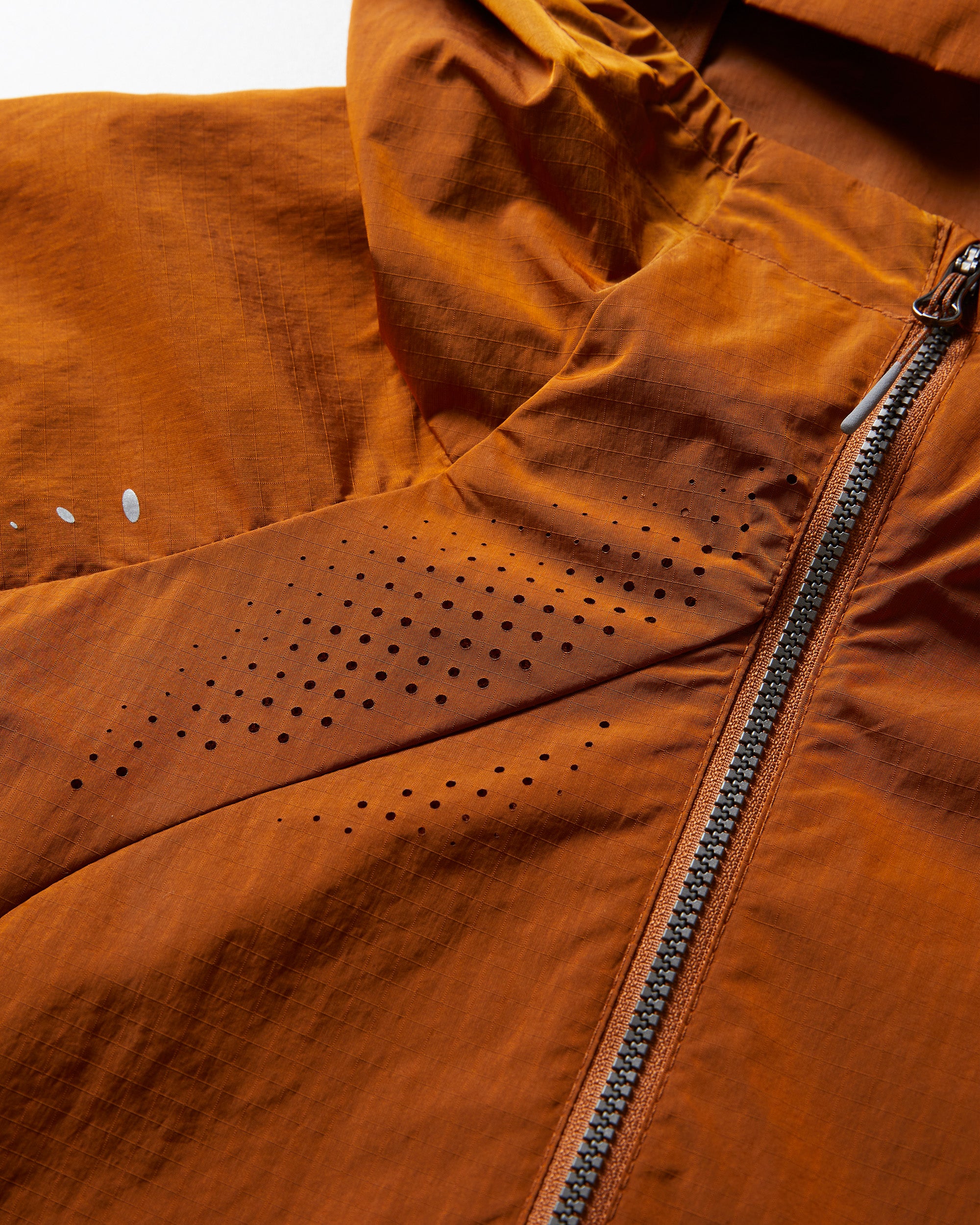 Promoting air flow during activity, the jacket features breathable mesh-lined pockets and laser-cut perforation on the back panel and chest.