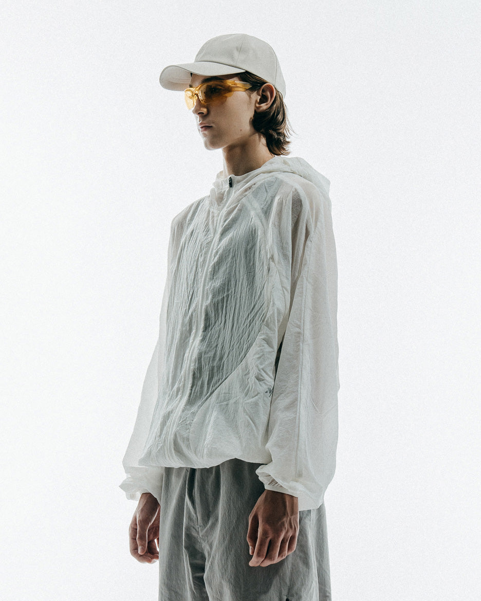 The jacket's sheer, gossamer-like shell envelops the wearer in a veil of protection, shielding them from nature without compromising breathability or movement. The delicate appearance belies the jacket's robust construction, as carefully selected materials blend strength and lightness, allowing the wearer to navigate with confidence. Woven into the fabric are the brand's commitment to innovation and appreciation for the natural world, with 3D pockets providing discreet, convenient storage solutions for the modern adventurer.